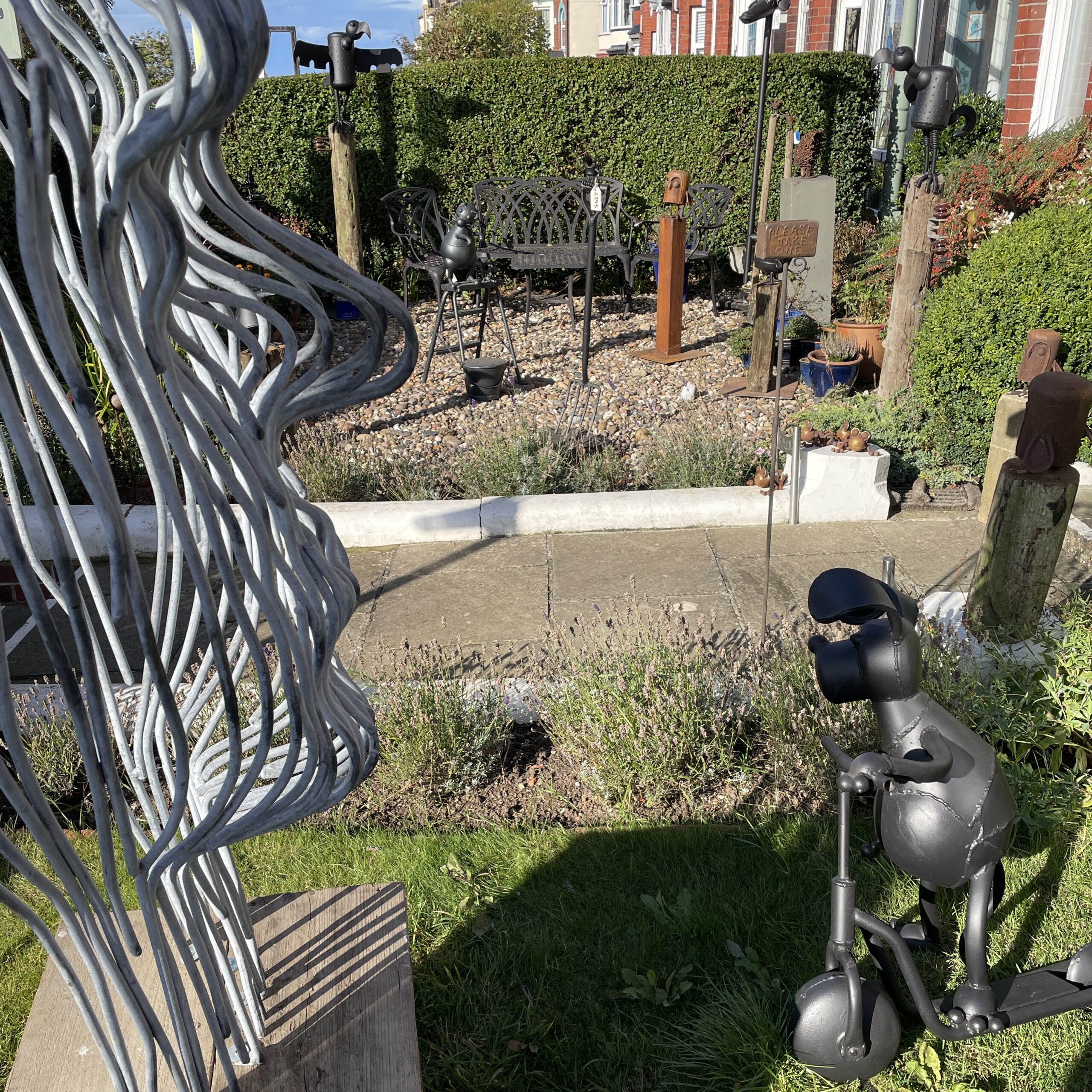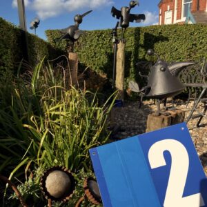 That’s it, Holmfirth Artweek all packed away for another year. It’s been really good fun and the weather has really helped with bringing people out to look at the main exhibition and the 41 fringe venues. I was in Coopers Yard in Holmfirth centre, the Sculpture Lounge and at a house called High View on Binns Lane. The Coopers Yard pieces were big because the space was fairly huge and they let me make some pieces from old beer barrels, namely a massive giraffe and a pig head. At High View I had sculptures in the garden and smaller pieces in the house whilst at Sculpture Lounge it was my usual Open Studio event along with most of the mill where you could meet the artists and see them working in their studios. It’s still too early to come up with final sales figures but it’ll be comparable to last year when we raised £45,000 to split between Macmillan and The Kirkwood.